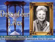 Frances Reid, known to millions of viewers as Alice Horton, the beloved matriarch of Days of our Lives' Horton family, has died. The actress, who once said she would not work on soaps because it was too exhausting, passed away on February 3, 2010. She was 95.